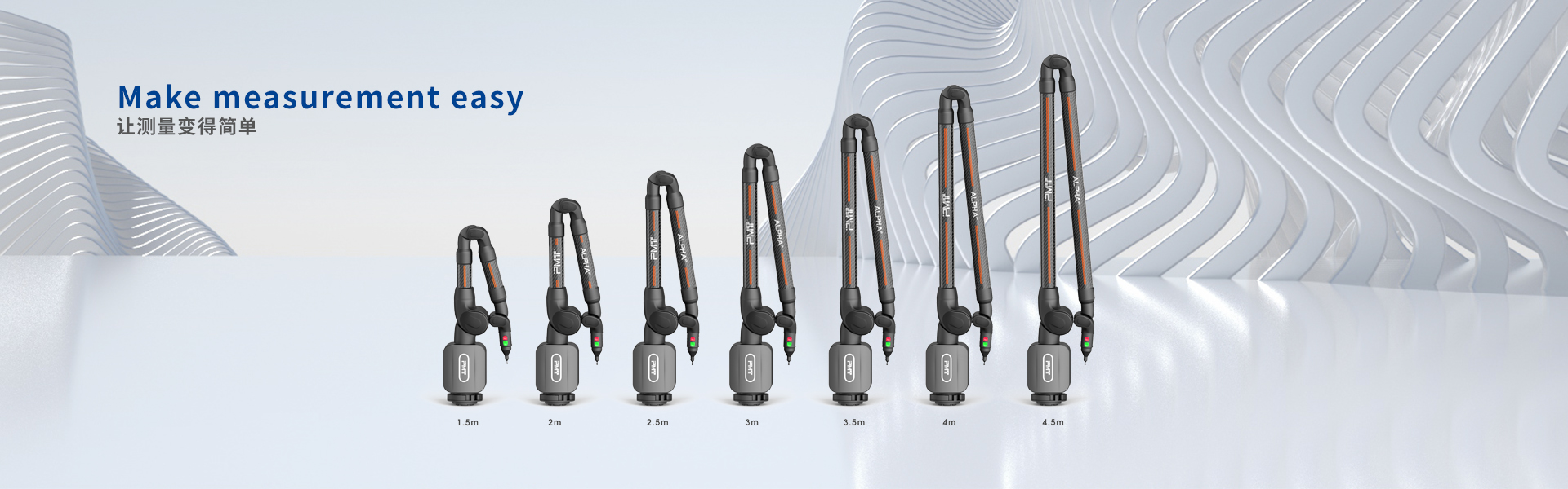 PMT ALPHA测量臂的等臂长设计稳定均衡,可以非常方便地探测到基座附近的位置,无测量死角,实现满量程测量。